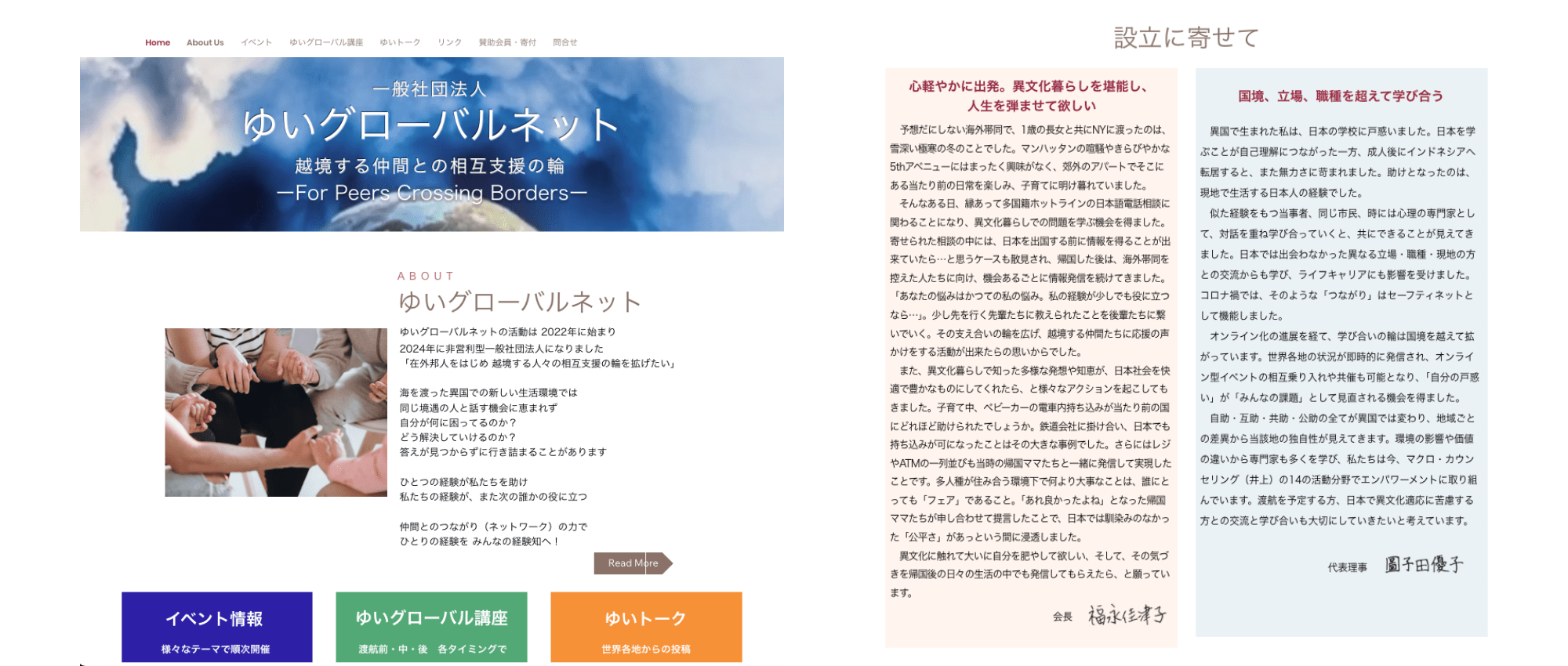 在外邦人や越境者の支援を行う「一般社団法人ゆいグローバルネット」様の団体概要ページに、当事務所(および代表名)を掲載いただきました。