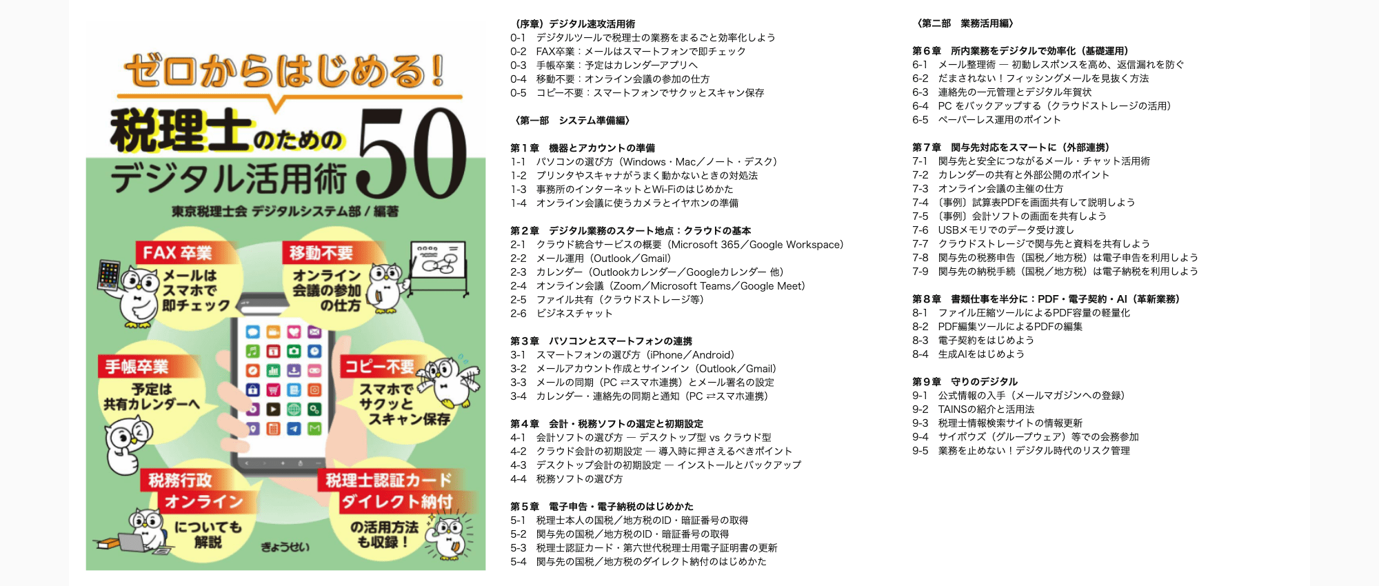 当事務所代表の金子が所属する東京税理士会デジタルシステム部では、税理士業務のデジタル活用をテーマにした実務書『ゼロからはじめる!税理士のためのデジタル活用術50』を2025年12月16日に出版予定です。
